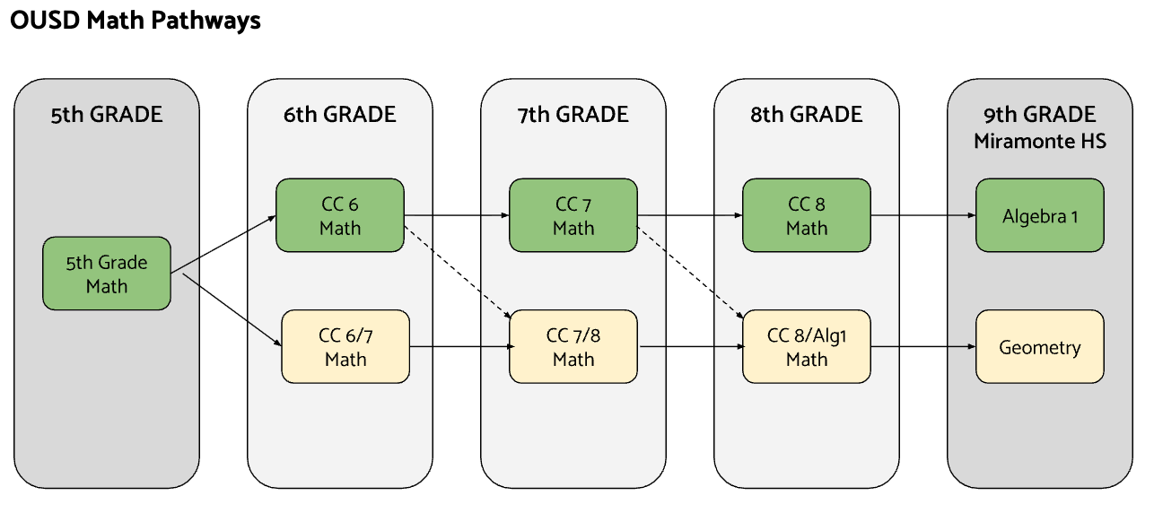The OIS Math Department focuses on California Common Core Math Standards and the 8 Mathematical Practices. All students will be problem solvers and critical thinkers who will be successful in high school and beyond. Students will communicate their reasoning and learn to think deeply about mathematical concepts. There are mulitple pathways offered, and students will be assessed by the math department throughout the year to ensure that the appropriate placement is being recommended.