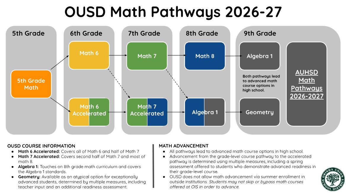 For more information about Math pathways and placement process please go to our OUSD Math Placement Page.